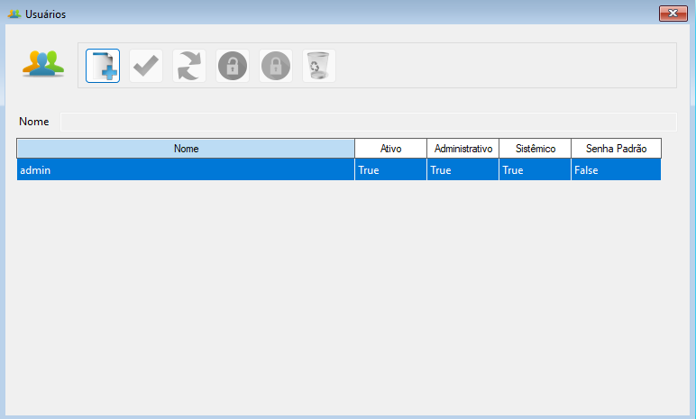 Senha Padrão: significa se o usuário está ou não com a senha padrão, definida pelo sistema. O usuário sempre é criado com a senha padrão e deve ser redefinido no primeiro login deste usuário.