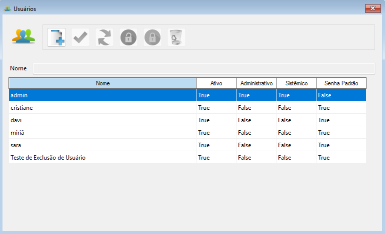 Para excluir um usuário, logado como administrador, entre na tela de Usuários, através da opção “Usuários“ do menu do MyMoney. Abrirá a tela a seguir:
