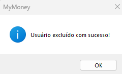 - Remoção Definitiva: Ao excluir um usuário, sua conta de acesso é removida do MyMoney. O usuário excluído não poderá mais fazer login no sistema.