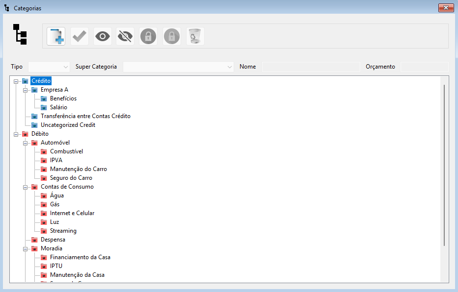 - Excluir Definitivamente Categorias: o MyMoney permite que a remoção definitiva de Categorias que não possuam lançamentos associados à ela.